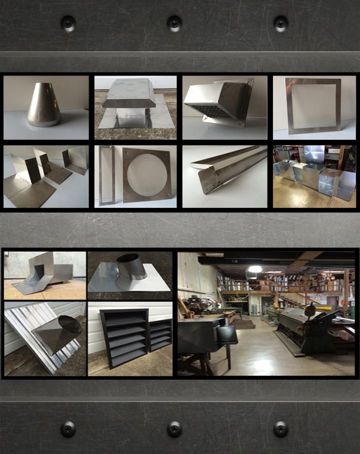 Our in-house sheet metal shop allows us to produce all manner of custom sheet metal work. We can make ductwork, architectural flashing, vents, louvers, and other sheet metal products. Our shop can produce these items to your exact specifications in a timely manner. We fabricate for homeowners and contractors alike.